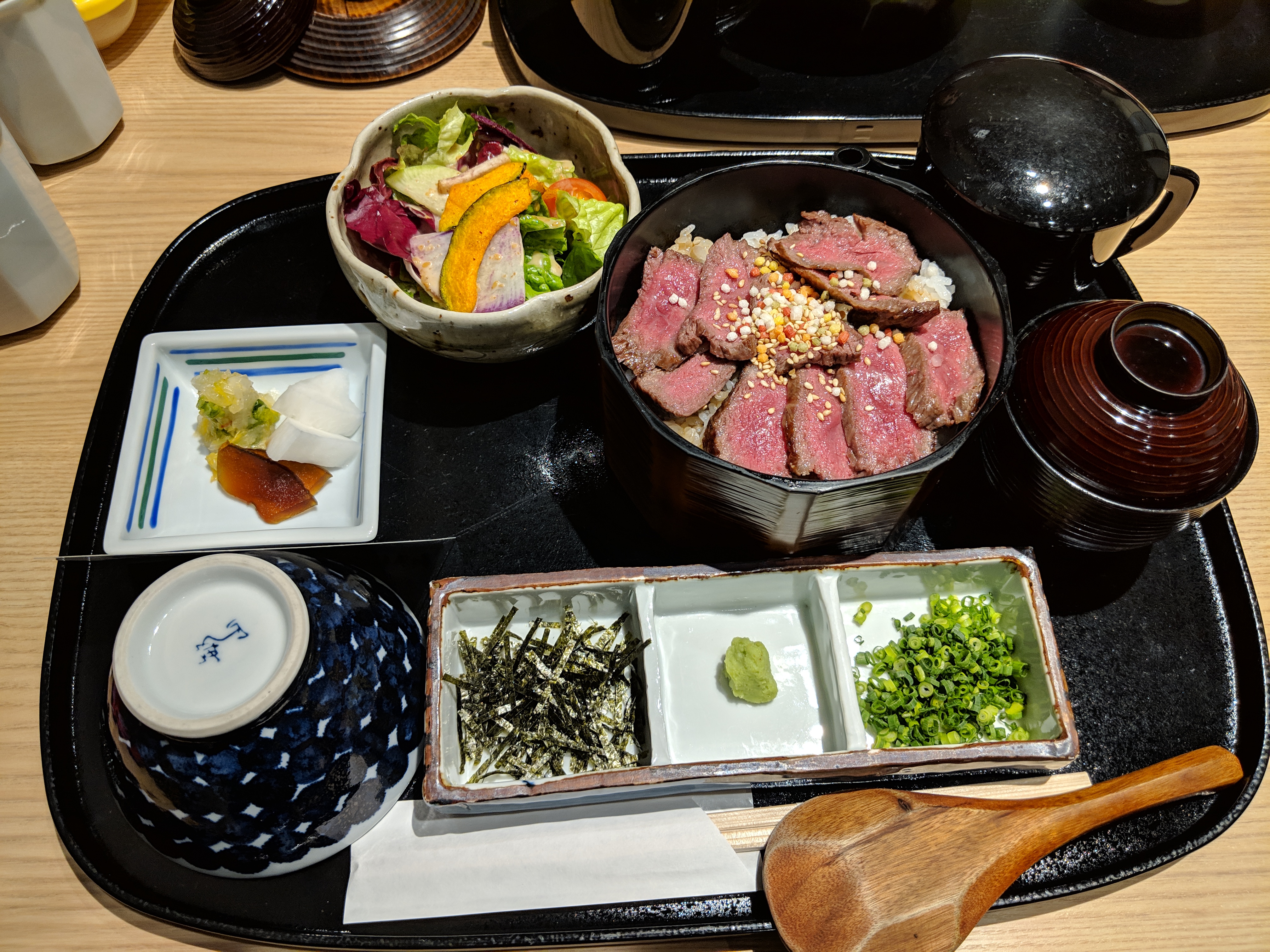 อีกเมนูนึงคือข้าวหน้าเนื้อย่าง จำชื่อไม่ได้ แต่เป็นเนื้อย่างชั้นดีอีกตัวนึงของญี่ปุ่น ฟินเช่นเดียวกัน เนื้ออย่างนุ่ม เนื้อจะย่างมาแบบไม่สุกมาก เป็น Medium Rare นุ่มฟินสุดๆ